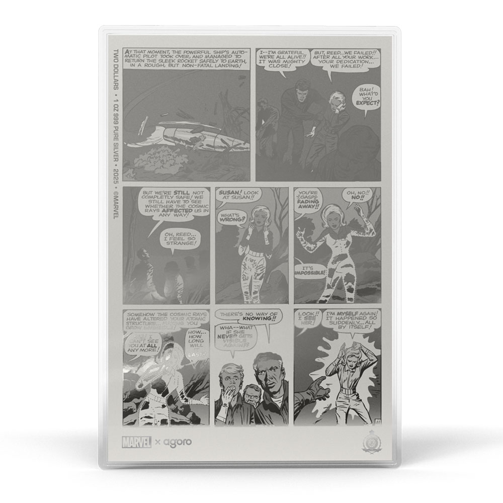 Each 2025 1 oz Proof Colorized Niue Silver COMIX Fantastic Four #1 Internal Page Coin arrives inside a presentation box, complete with a Certificate of Authenticity. These foils come with individual serial numbers and are securely packaged.