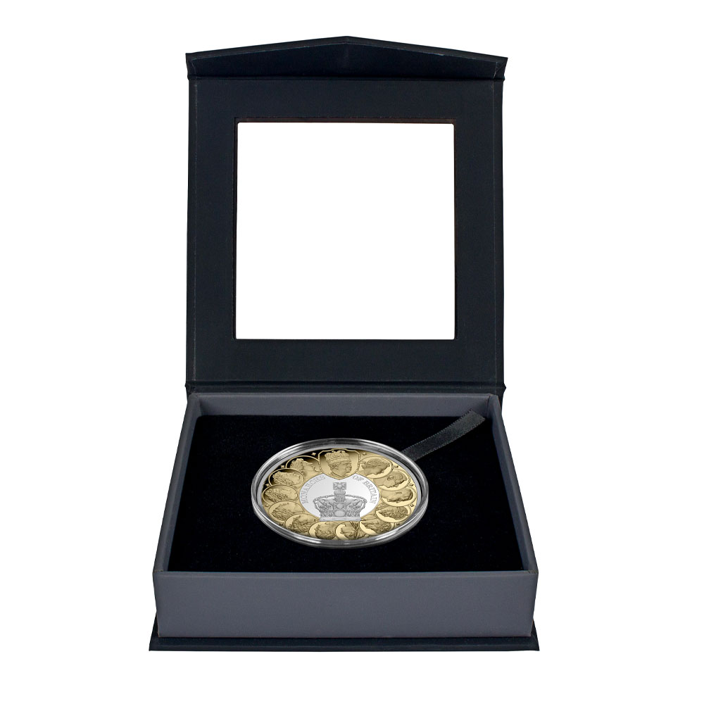 • On the reverse are portraits of all 13 monarchs surrounding the St. Edwards Crown.
