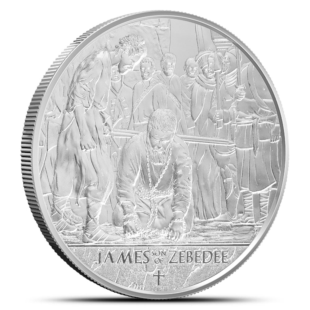 The Martyrdom of the Twelve Series honors the apostles of Jesus Christ and the sacrifices they made for their faith. Each coin in the series focuses on one of these followers who remained faithful to Jesus through his ministry and faced martyrdom. BGASC now offers the 2025 1 oz Proof Republic of Ghana Silver James the son of Zebedee Coin.
