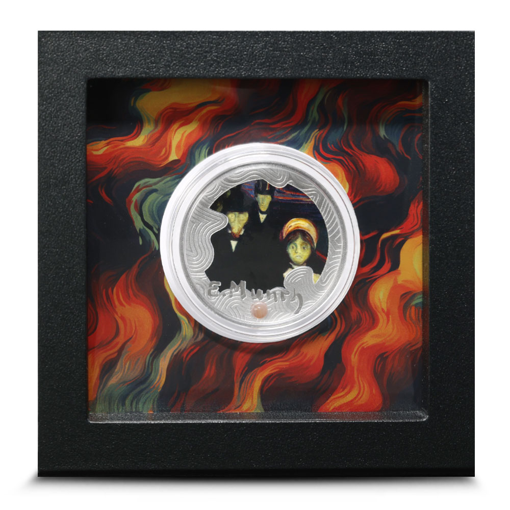 Edvard Munchs Anxiety, painted in 1894, is a powerful piece that explores emotional tension and fear, much like his more widely known work, The Scream. To honor the 160th anniversary of the artists birth, Anxiety is now presented on a proof silver coin. BGASC is offering the 2024 17.5 Gram Proof Colorized Cameroon Silver Edvard Munch Coins online.