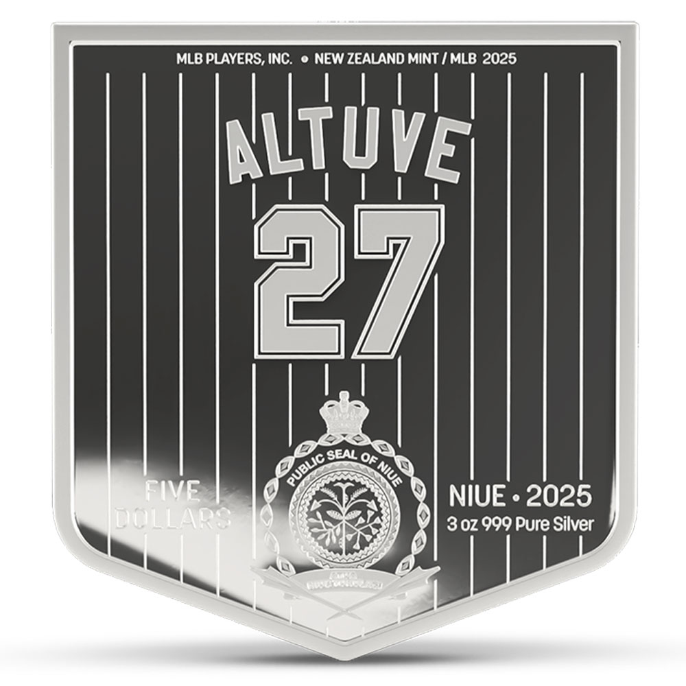 Jose Altuve is a Venezuelan-born baseball player who has built a lasting legacy with the Houston Astros as one of the clubs greatest second basemen. Standing 56, he has proven himself on the field as a reliable hitter and strong fielder. BGASC now has the 2025 3 oz Proof Colorized Niue Silver Major League Baseball Jose Altuve Coin available for purchase.