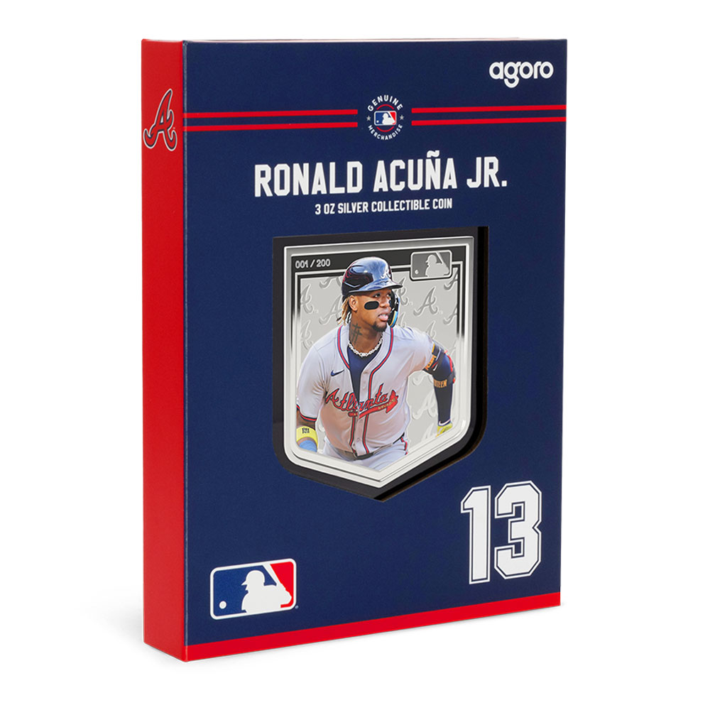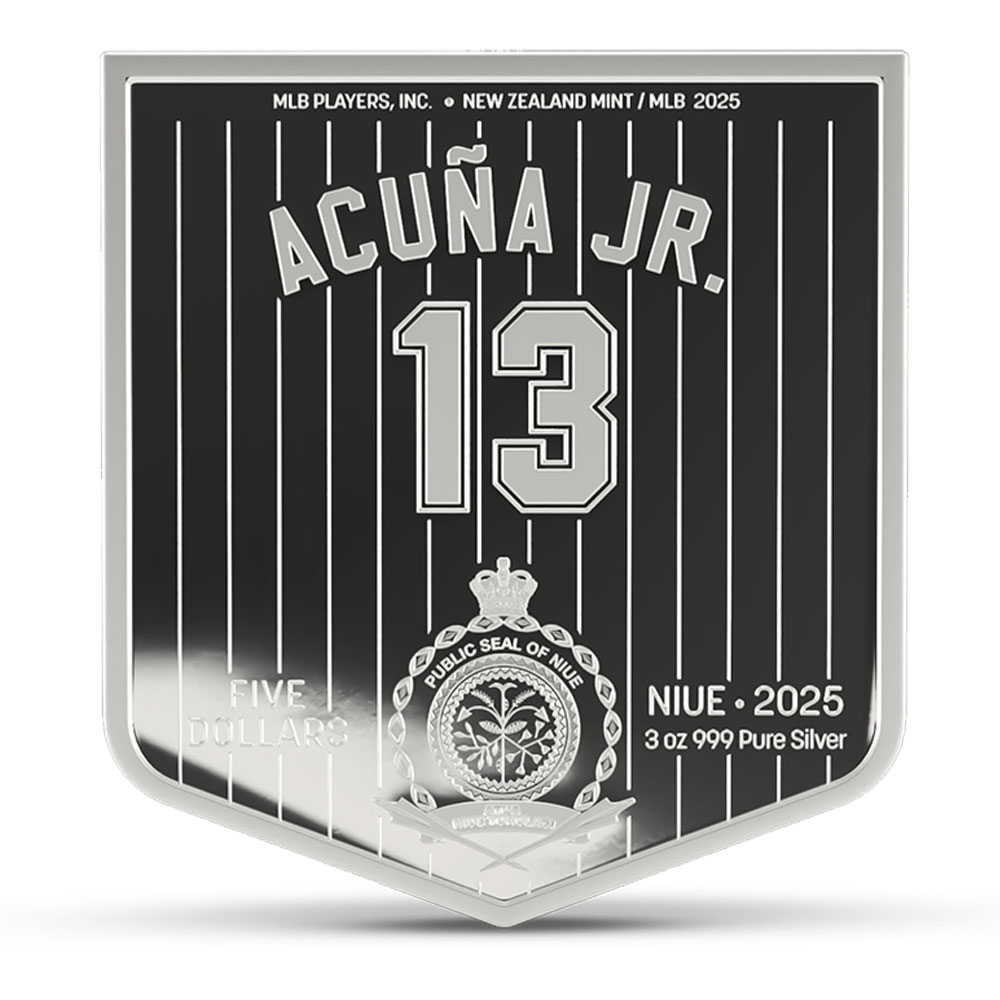 The New Zealand Mints officially licensed MLB Series includes coins that focus on both individual athletes and full teams. This release highlights Ronald Acua Jr. of the Atlanta Braves, with a colorized image on the reverse and a classic Niue design on the obverse. Right now, BGASC has the 2025 3 oz Proof Colorized Niue Silver Major League Baseball Ronald Acuna Jr. Coin available for purchase.