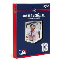 On the reverse, youll find Acua Jr. in action with the Braves logo featured behind him. His passion and presence on the field have earned him a loyal fan base and a key role in growing baseballs popularity.