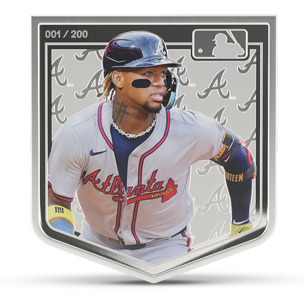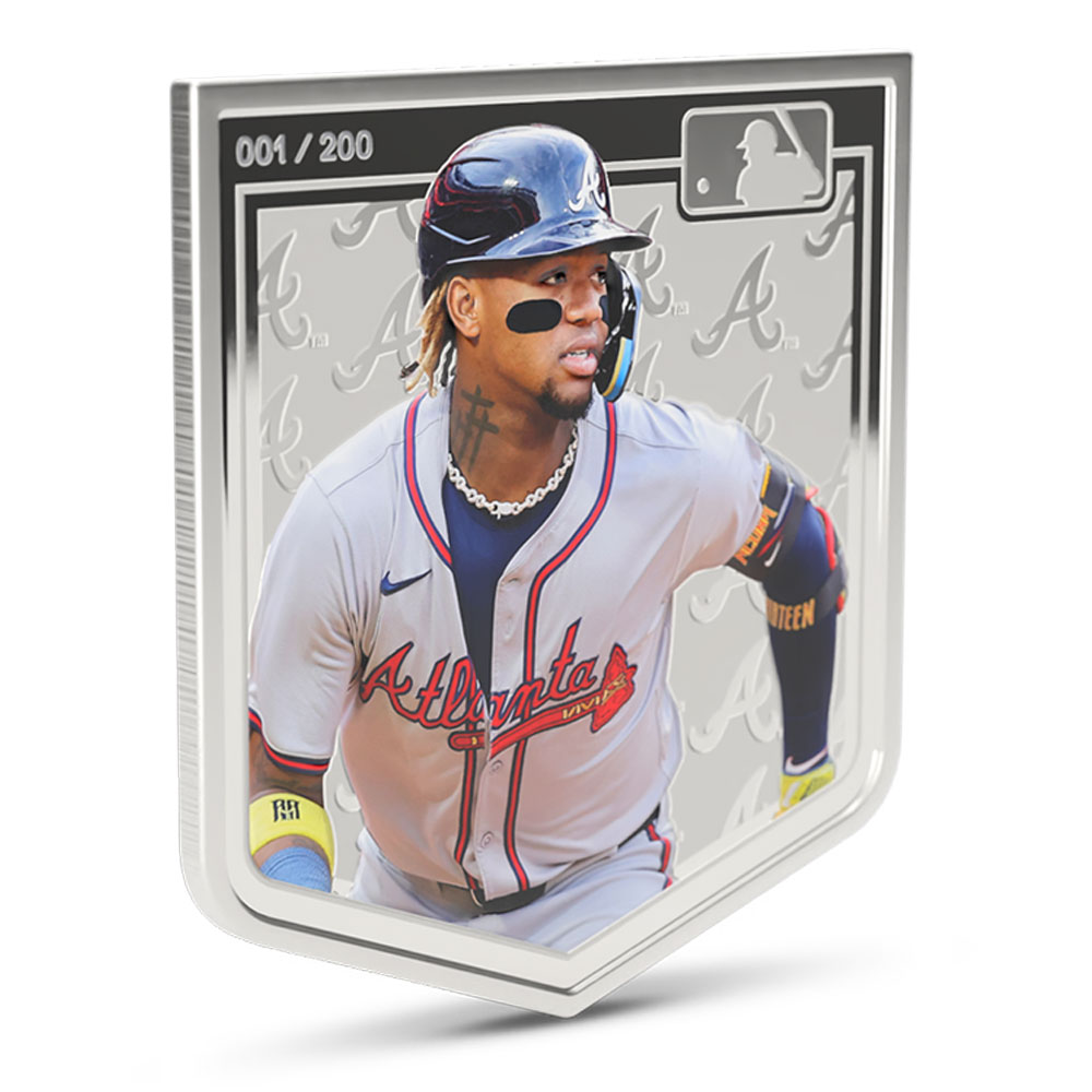 - Reverse depicts Ronald Acuna Jr. in action with the Atlanta Braves logo in the background.