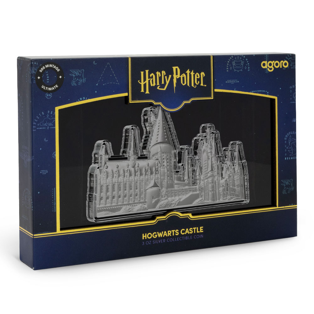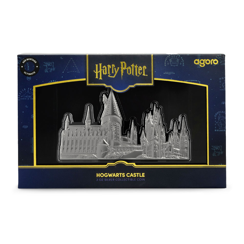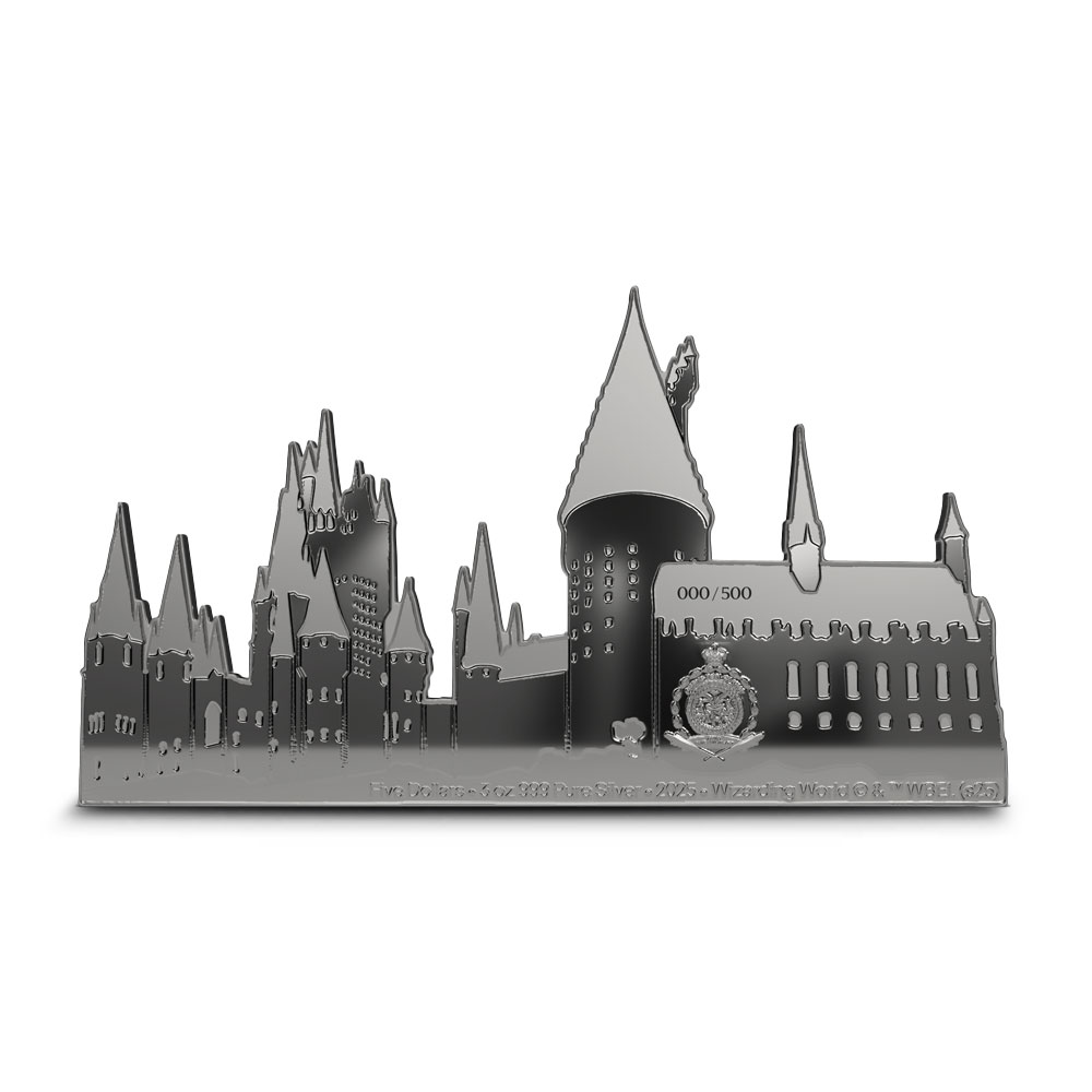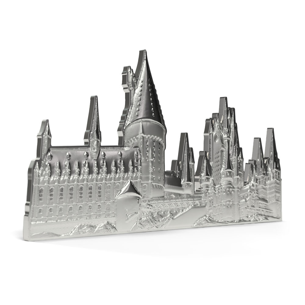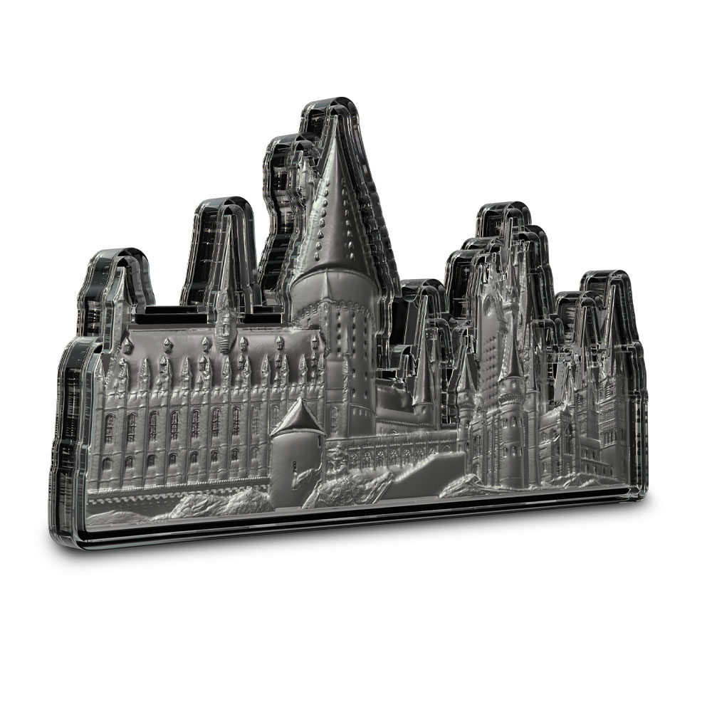 - 3D, shaped silver coin replicates Hogwarts Castle!