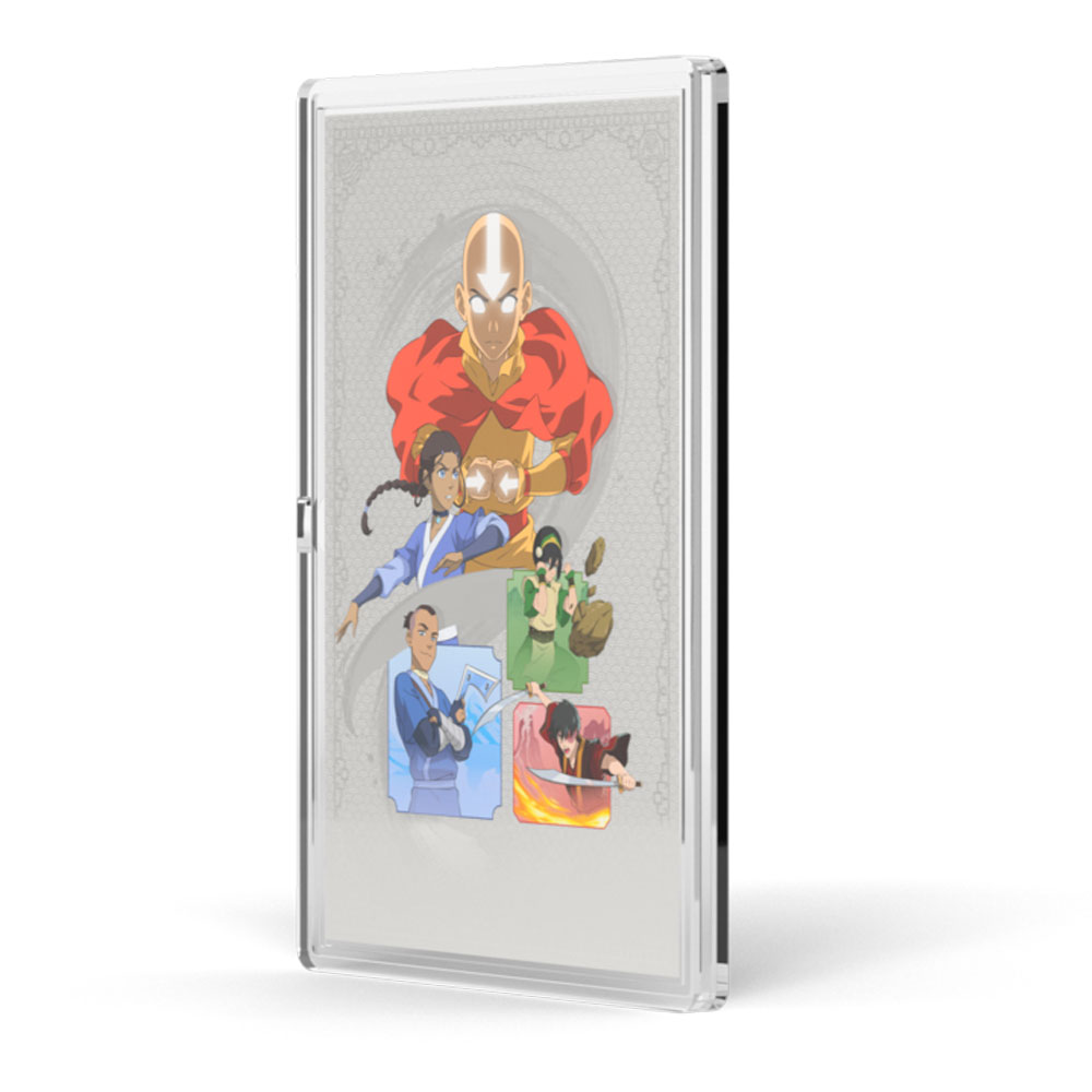 Your 2025 5 Gram Niue Silver Avatar The Last Airbender Note comes in an individual presentation box and includes a Certificate of Authenticity. The reverse shows the main characters in color, while the obverse includes the official seal and serial number.