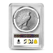 These 2025 Peace Silver Dollars are graded as Mint State 69, which indicates a nearly perfect coin. These examples retain their full mint brilliance and will show no more than two tiny marks or faint lines, none of which appear in the main design areas. The First Strike label applies to coins graded within 30 days of their release from the mint.