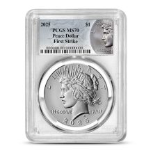 These 2025 Peace Silver Dollars are certified in perfect condition. The MS70 grade from PCGS means each coin has full original luster and no visible flaws. The First Strike label confirms the coins were graded within 30 days of being released by the mint.