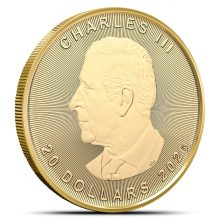 The obverse of the 2026 1/2 oz Gold Maple Leaf shows King Charles III in left-profile. Designed by Canadian artist Steven Rosati, this portrait is the first Canadian coin image of the new monarch and presents him without a crown. Only two other Canadian artists have ever created portraits of British monarchs for the nations coinage.