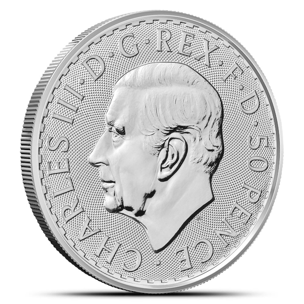 The obverse of the 2026 1/4 oz Silver Britannia presents a left-facing portrait of King Charles III without a crown. This image, designed by sculptor Martin Jennings in 2022, is the first official portrait of His Majesty to appear on British coinage.