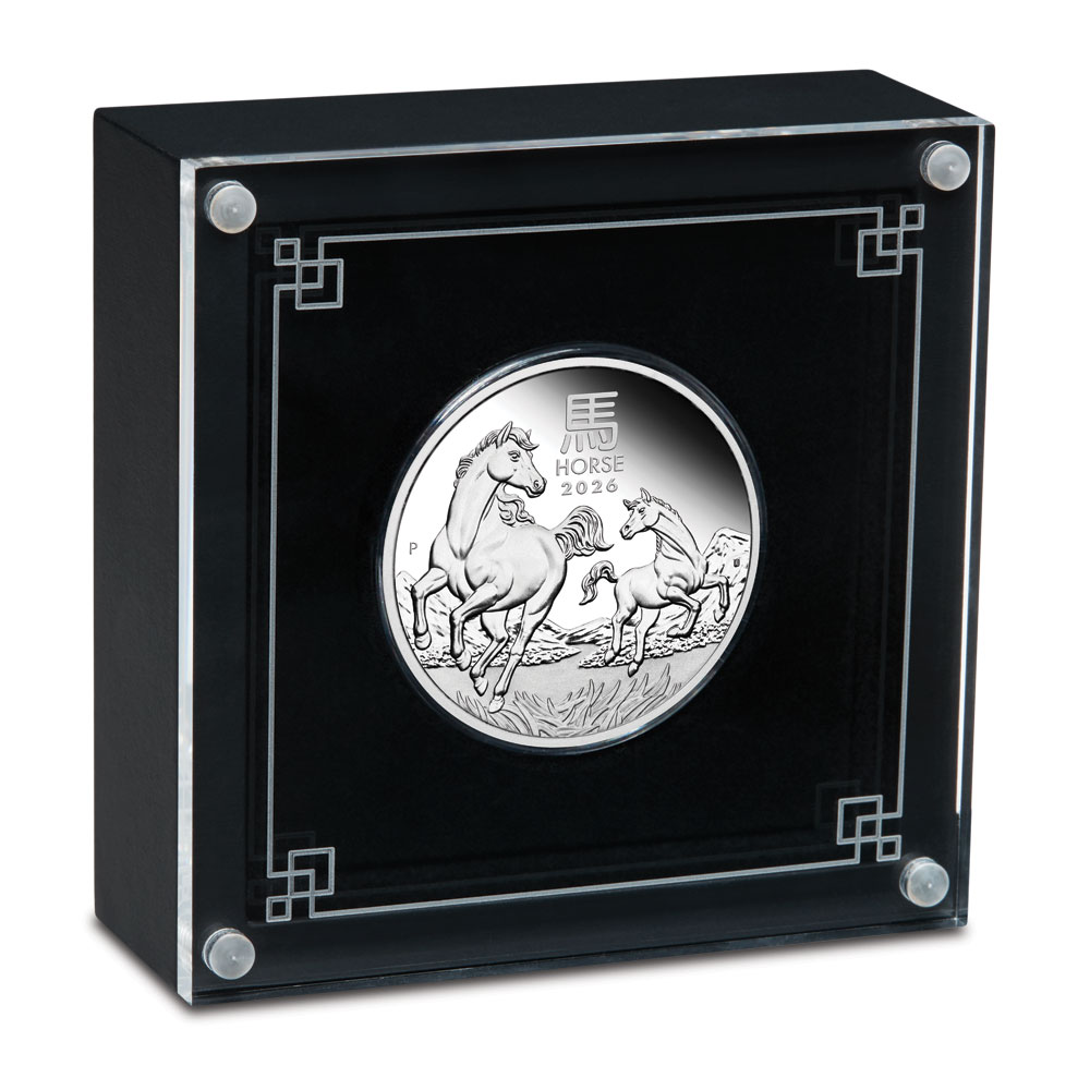 Home » Sovereign & Private Bullion Mints » Perth Mint » 2026 1 oz Proof Australian Silver Lunar Horse Coin (Box + CoA)