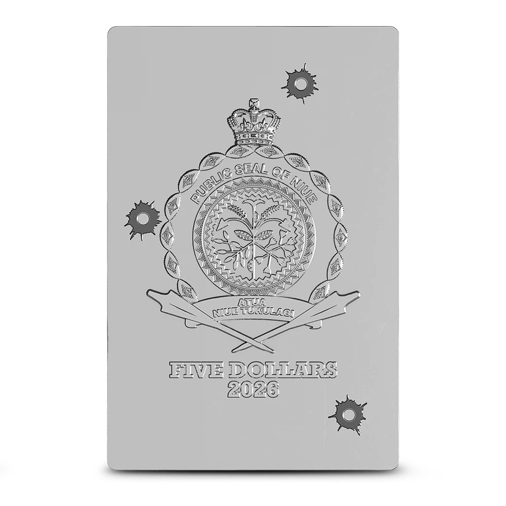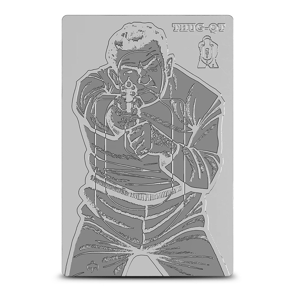 Since the early 1900s, human silhouette targets have been used to train shooters to improve their aim and focus on vital areas. Over time, these targets changed from simple shapes to lifelike outlines for more realistic practice. The THUG-QT target featured on this rectangular coin captures that same training concept. BGASC now offers the 2026 2 oz Proof Niue Silver THUG-QT Coin to collectors and enthusiasts.