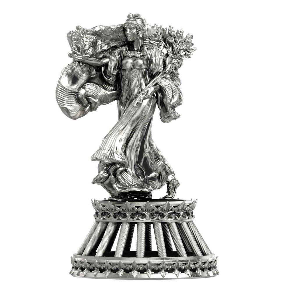 Each 22 oz Antique Finish The Walking Liberty Silver Statue is offered with a protective box and a Certificate of Authenticity. The statues come with engraved identifying hallmarks on their bases and feature an antique polish throughout. The sterling silver content equates to .925 fine silver.