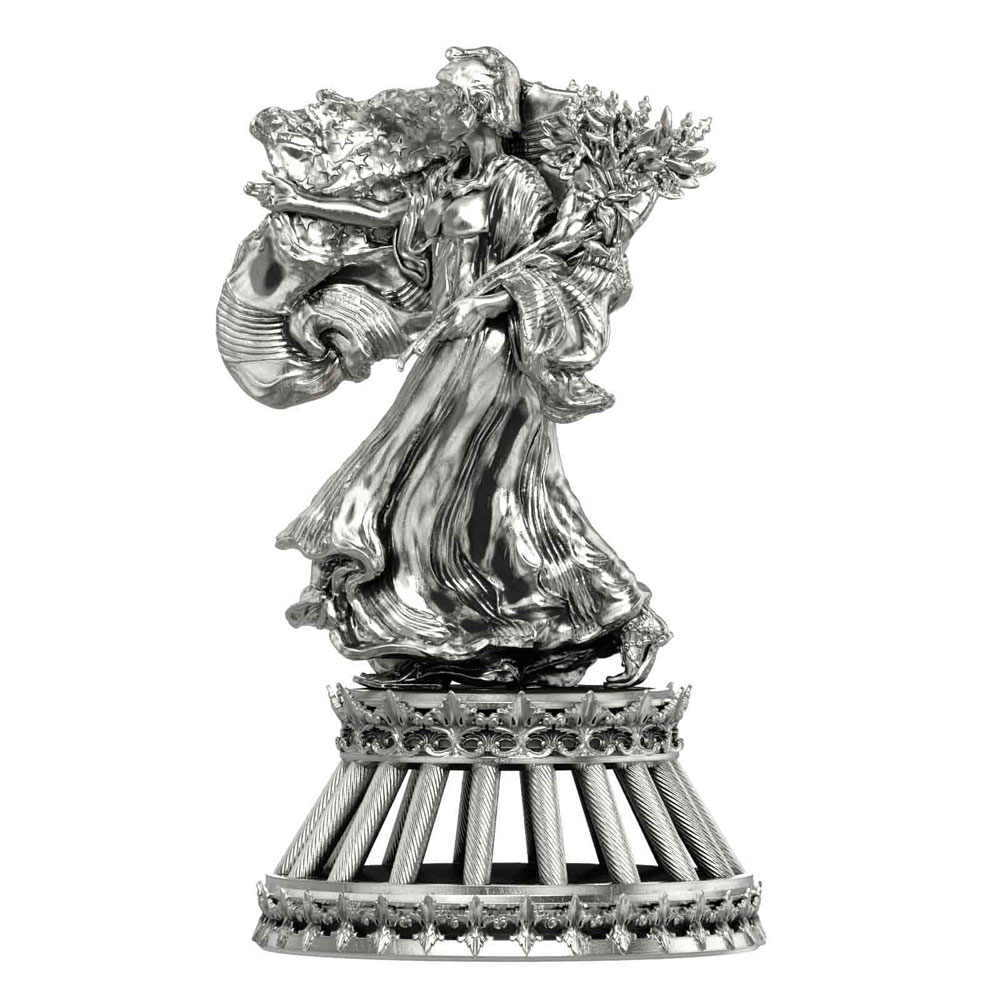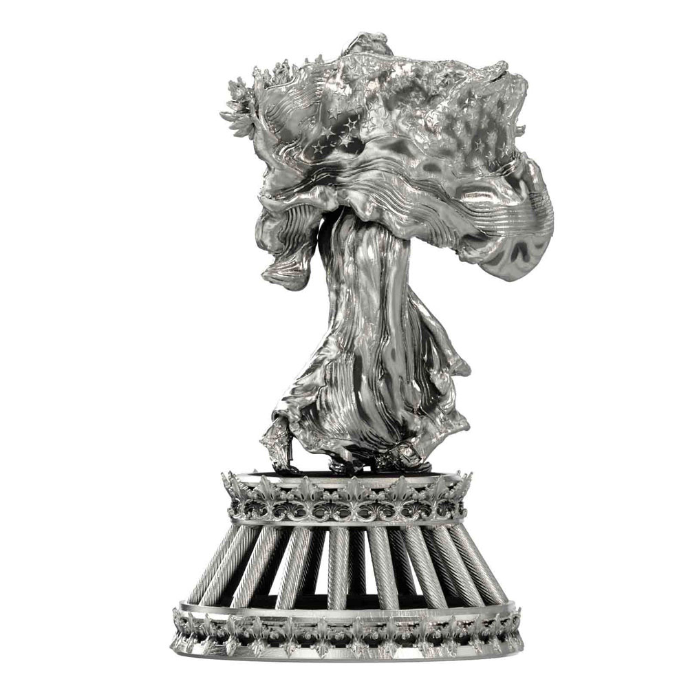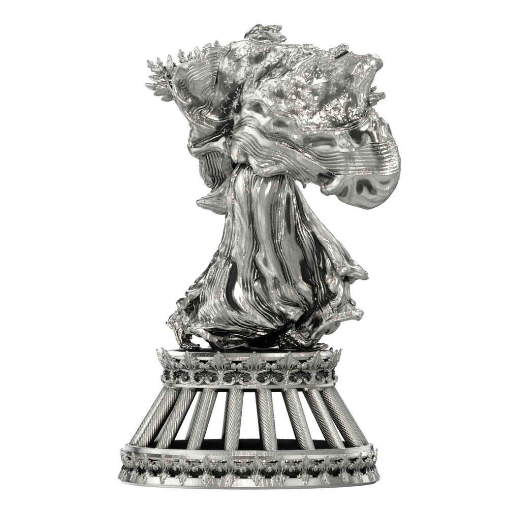 The design of the 22 oz Antique Finish The Walking Liberty Silver Statue closely mirrors Weinmans original creation. Lady Liberty is depicted striding confidently forward, draped in flowing robes while holding an olive branch, symbolizing the nation’s strength, resilience, and optimism. This dynamic design has received widespread acclaim from collectors and the general public alike.