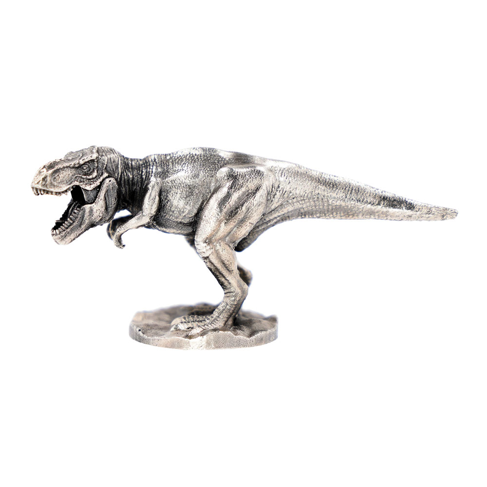 The Tyrannosaurus rex lived in North America during the Late Cretaceous period, with fossils dating back to between 68 and 66 million years ago. First unearthed in 1902 by paleontologist Barnum Brown, this dinosaur quickly became a favorite among researchers and the public alike. BGASC now has the 3 oz Antique Finish Tyrannosaurus Rex Silver Statue available for purchase.
