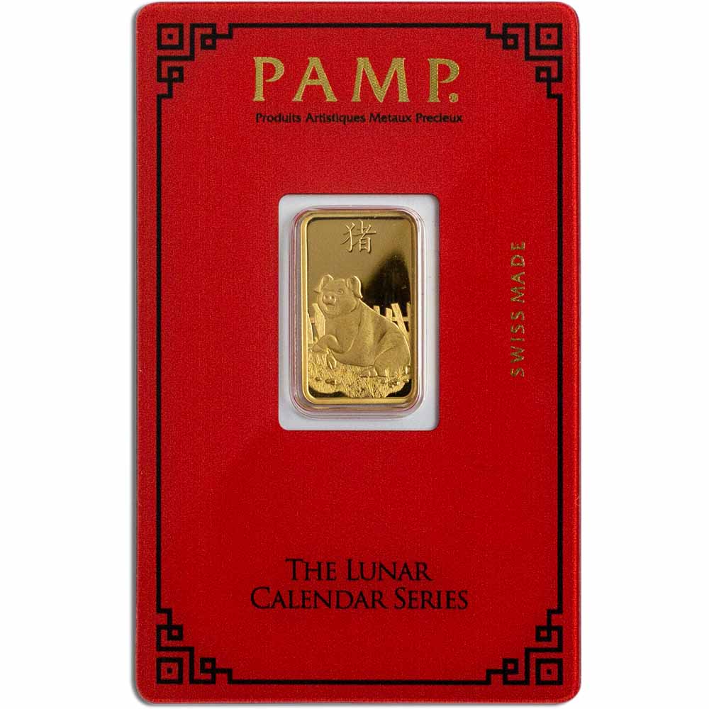 PAMP Suisse, a globally renowned bullion brand, presents this extraordinary Lunar Gold Pig Bar as part of its Chinese Lunar Calendar theme. Each lunar year brings a new design, with the Year of the Pig design exclusively available throughout 2019.