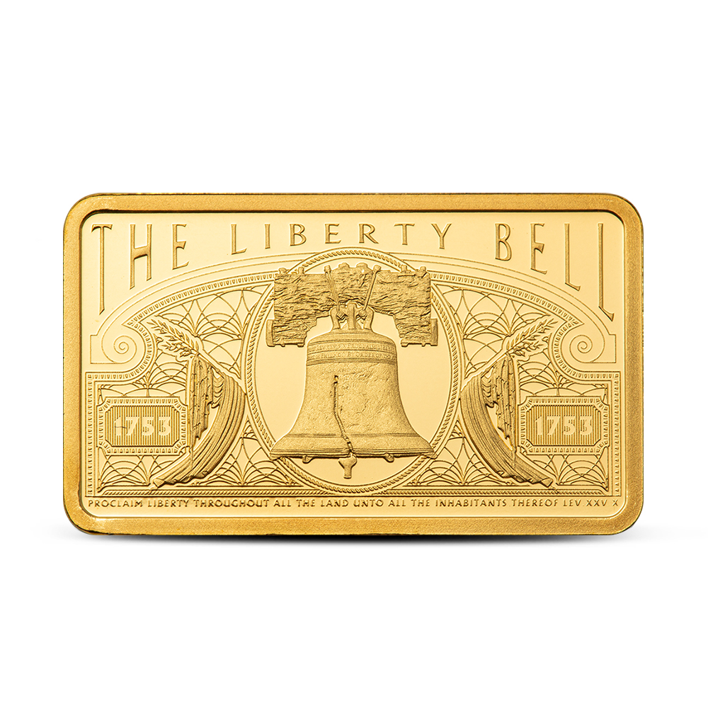 The Liberty Bell is one of the most enduring symbols of Americas independence. Located in Philadelphia at the Liberty Bell Center, the bell was cast in 1752 and weighs about 2,080 pounds. Its inscription reads, Proclaim Liberty throughout all the land unto all the inhabitants thereof, a phrase from the Bible. PAMP Suisses America the Free Series celebrates this important symbol with a Liberty Bell gold bar. BGASC now offers the 5 Gram PAMP Suisse America the Free Liberty Bell Gold Bar.