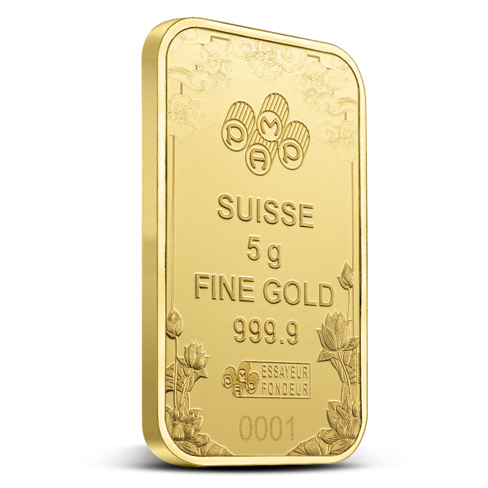 5 Gram PAMP Suisse Gold Good Luck Yellow Dragon Bar (New w/Assay)