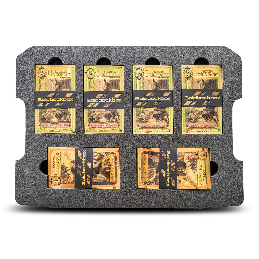 In each 5,000 Florida GoldbackBox, there are 2,022 individual Florida Goldbacks. These are housed in a secure, tamper-resistant box meant to safeguard your notes. A custom foam insert holds each set of notes in place by denomination.