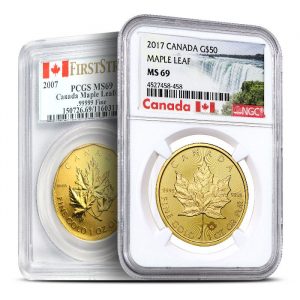 1 oz Canadian Gold Maple Leaf MS69 (Random Year, Varied Label, PCGS or NGC)